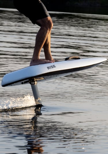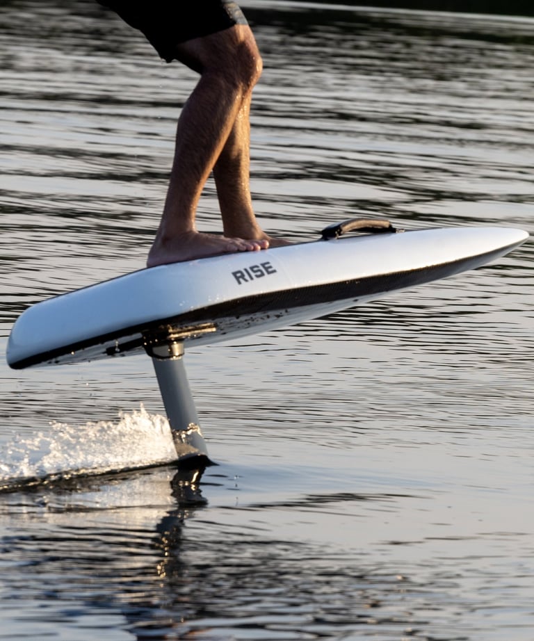 Seja para iniciantes ou para aqueles que já buscam adrenalina, em águas calmas ou nas ondas mais intensas, a prancha e-foil da Rise permite que você escolha sua própria aventura, com um motor elétrico silencioso que desliza suavemente por qualquer superfície aquática.