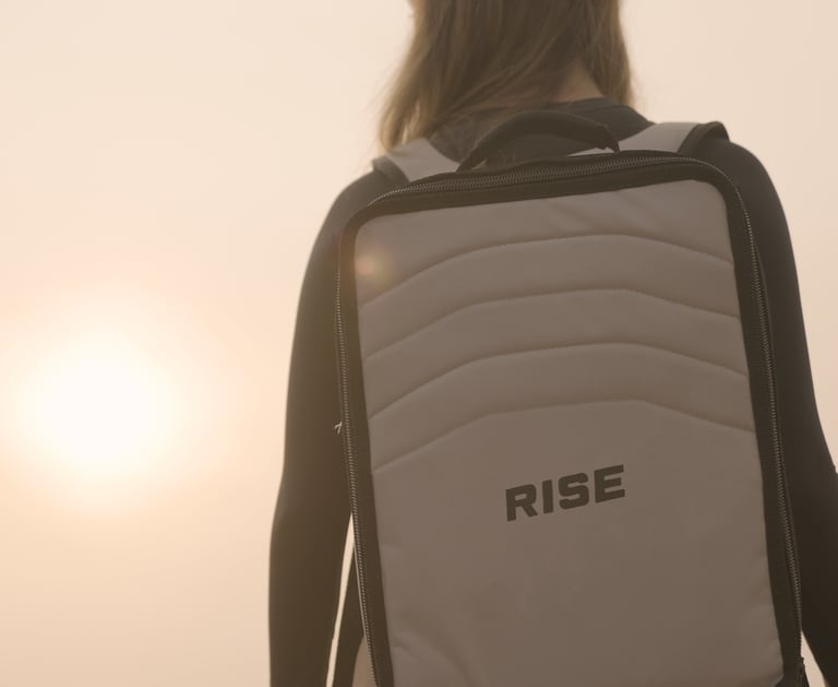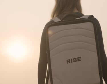 Bag resistente e acolchoada, com compartimentos organizados e alças ergonômicas, garantindo proteção e praticidade para auxiliar no transporte da prancha e-foil Rise.